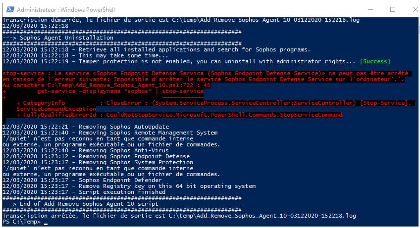Check the log file in C:\Temp and verify, using the Control Panel, that there are no more SOPHOS programs.