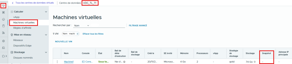 From the menu Data Centers > Virtual Machines > in the Snapshot column, verify that there are no snapshots on your VM.