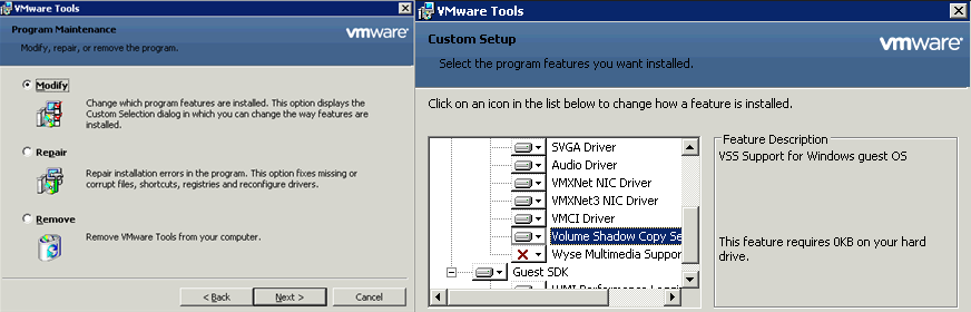 - For proper backup functionality, you need to have the latest version of VMware Tools updated according to the ESXi version of CaV.