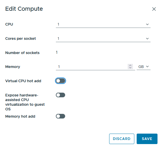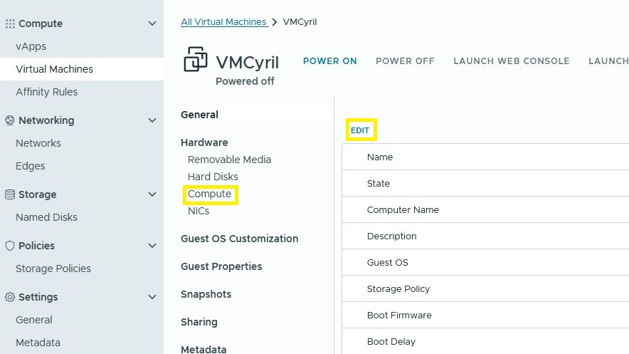 Once the virtual machine is created, you can modify it at any time provided that it is stopped; the operation cannot be done while the machine is running.
