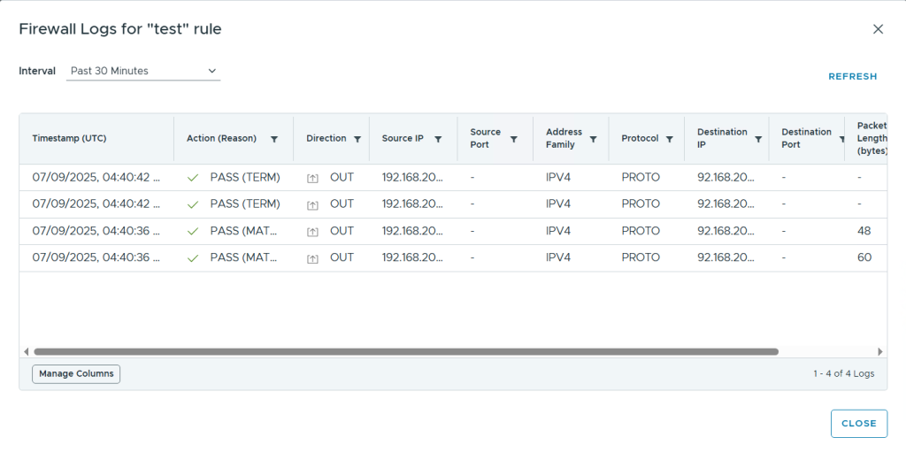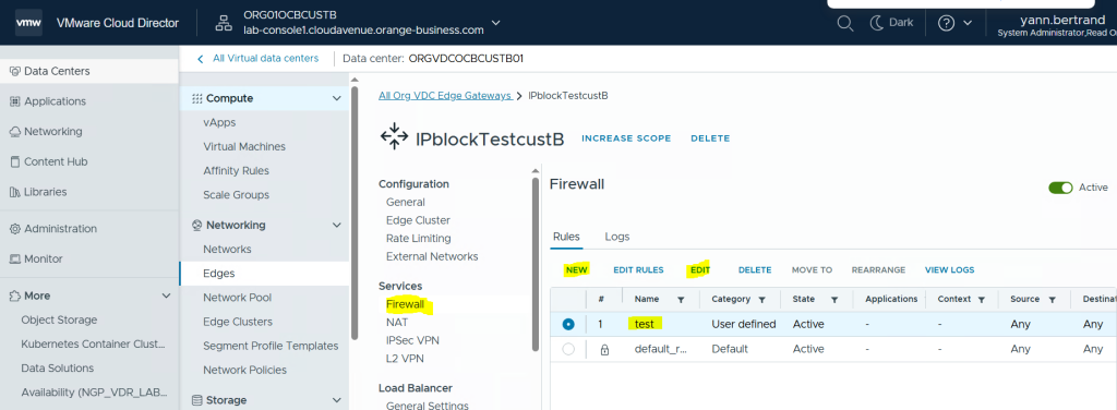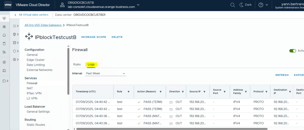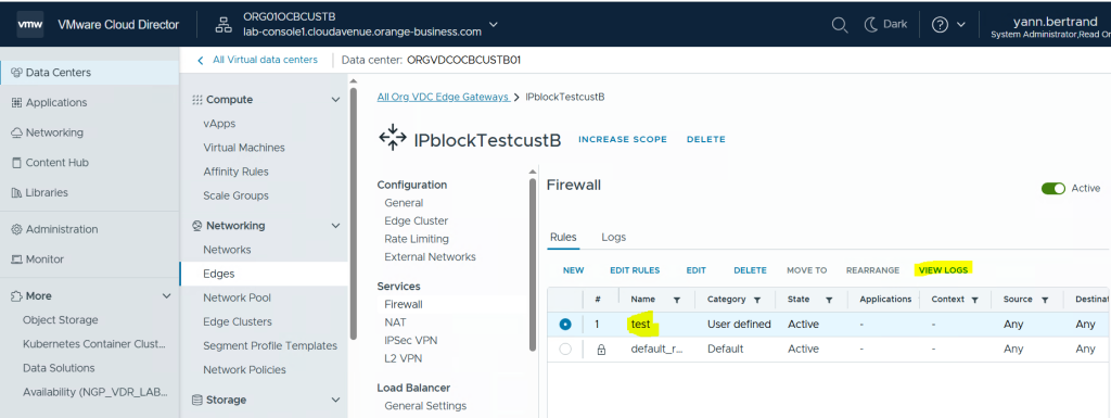 On VCD 10.6 there is a new feature that allow you to see the logs of FW directly from your tenant.