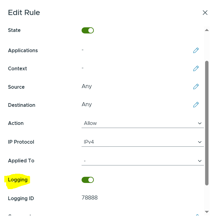 Go to Firewall and create / or modify an existing rules to enable the logs :