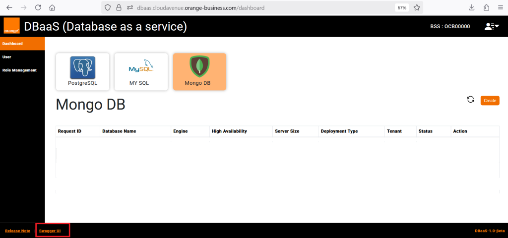 Connect to URL – https://dbaas.cloudavenue.orange-business.com/