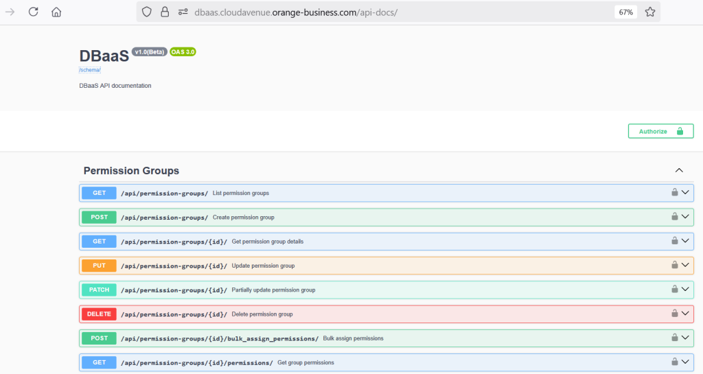 DBaaS Portal provides all ability to call all the functionality via API and an integrated Swagger UI is provided where all the API are documented and API interaction can be done. Link is provided at the bottom of the page.