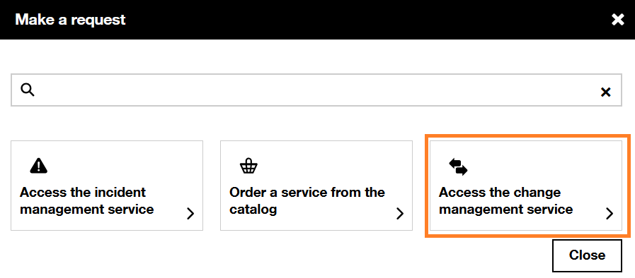 - In the Request page, click “Make a request” and choose the tour contract from the drop down menu and select “Access the change management service”.