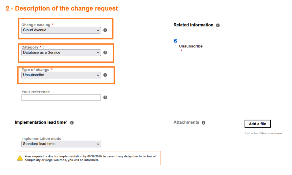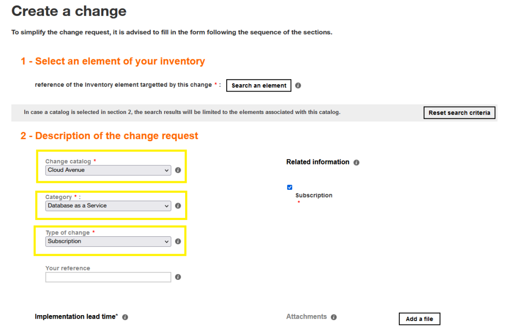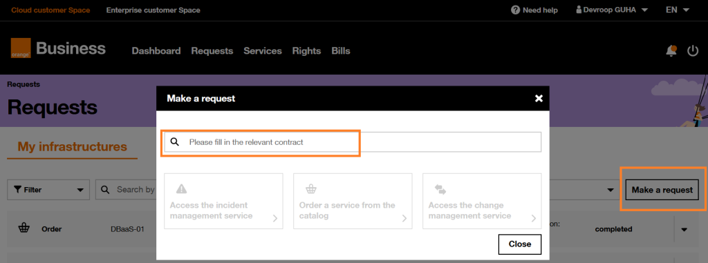 CAV DBaaS requires that you have an existing CAV customer which provides you with necessary right to open an change request via the Orange Cloud Portal.