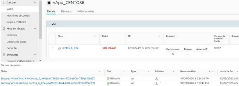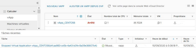 - Démarrer / Arrêter des vApps