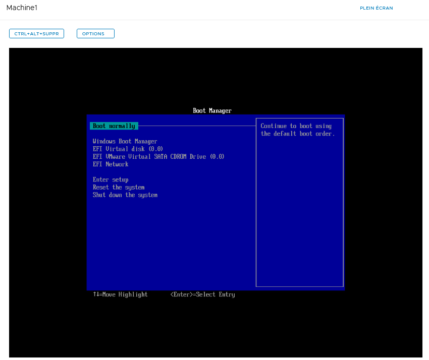 Redémarrez votre VM et relancer une Remote Console. Au redémarrage vous accédez au BIOS.