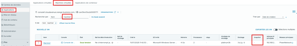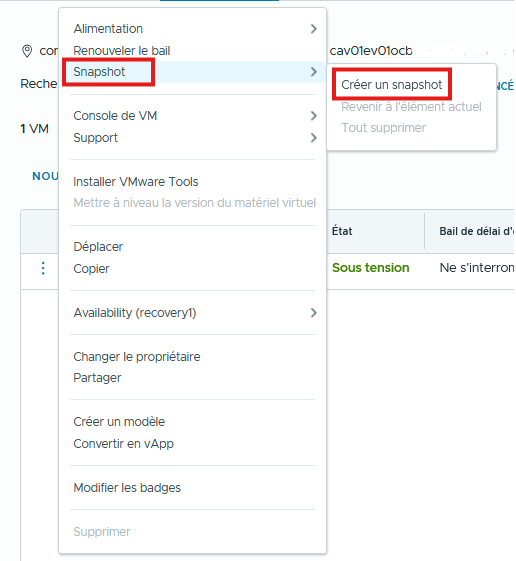 Depuis le menu Applications > Machines virtuelles > Snapshot