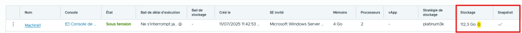 Un snapshot consommera l’équivalent de la taille des disques de votre VM sur la stratégie de stockage utilisé par celle-ci.