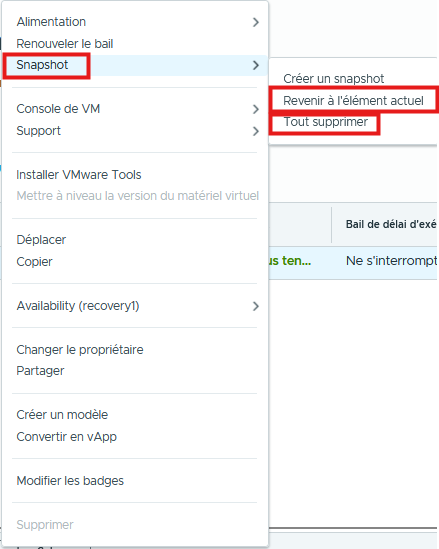 Pour restaurer un Snapshot et revenir à un état avnt une opération sélectionner « Revenir à l’élément actuel« .