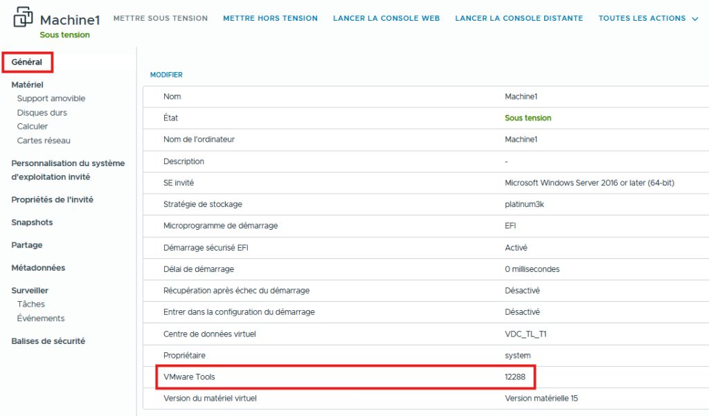 Les VMware Tools sont une suite d’utilitaires que vous installez dans l’OS d’une VM dans le but d’améliorer ses performances et permettre d’utiliser un grand nombre de fonctionnalités. Dès que l’on déploie une VM sur un Hôte VMware, il est nécessaire d’installer les VMware-Tools pour obtenir les dernières fonctionnalités. Plus de Détails ICI.