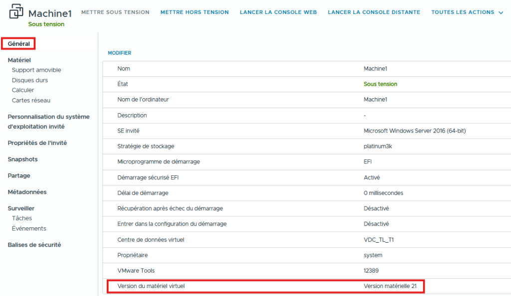 Depuis le menu DETAILS de votre VM > Général > Version du matériel virtuel