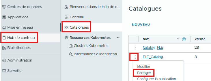Sélectionnez Hub de Contenu / Catalogues / NOUVEAU