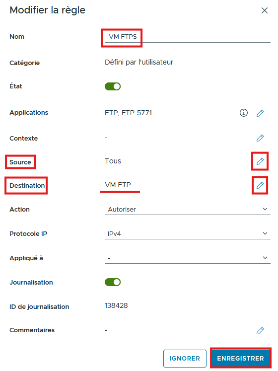 Vous pourrez ensuite créer des règles de Firewall sur la T1 en ajoutant dans la partie Source et Destination ces Groupes d’adresses IP.