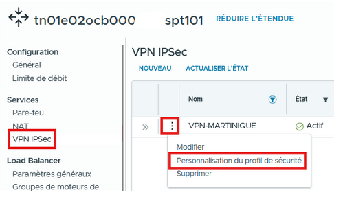 Accéder au menu Mise en réseau / Passerelles Edge / VPN IPSec puis NOUVEAU.