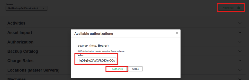 Revenir en haut du Swagger et faire Authorize puis copier le token et faire Authorize.