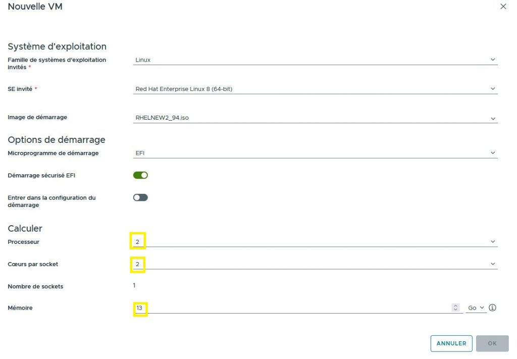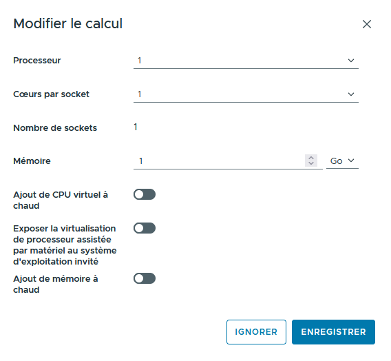 Choix des ressources CPU et RAM