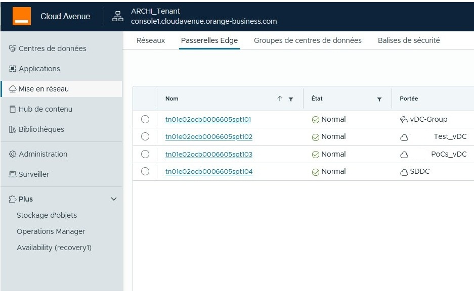 Allez sur votre OrgVDC et sélectionnez la passerelle Edge que vous voulez :