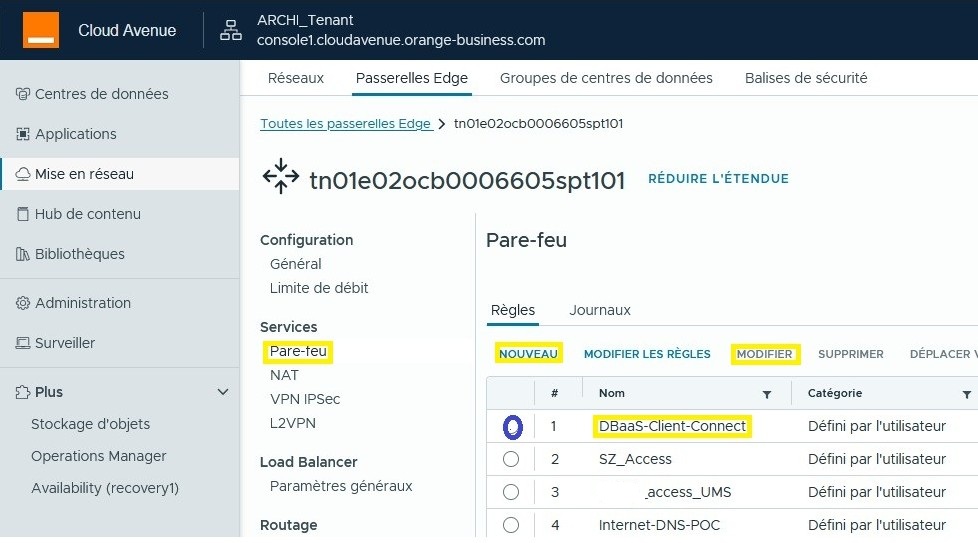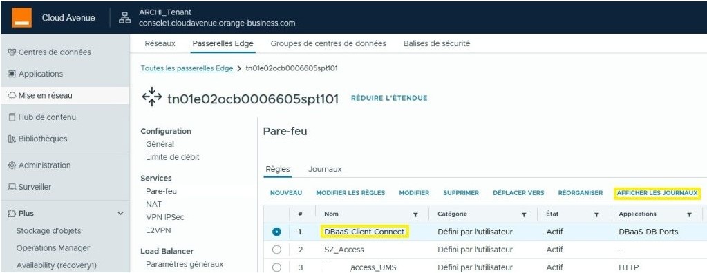 Dans cette exemple, nous activons les logs sur les régles de pare-feu « DBaaS-Client-Connect » :