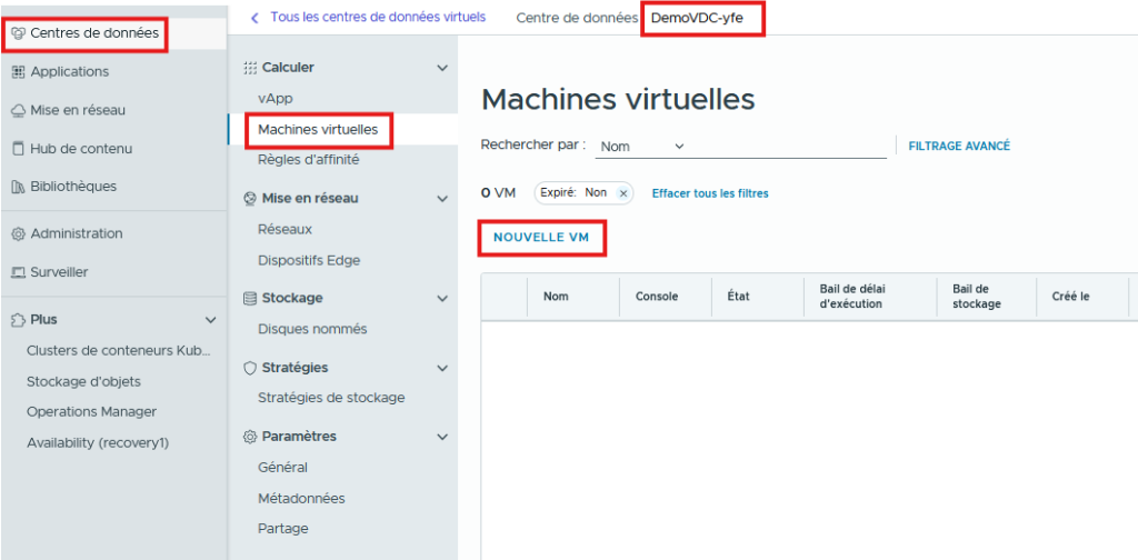 - Depuis Centres de données / Machines virtuelles (Autonome) / NOUVELLE VM
