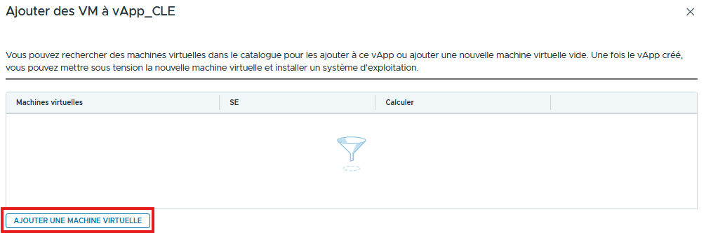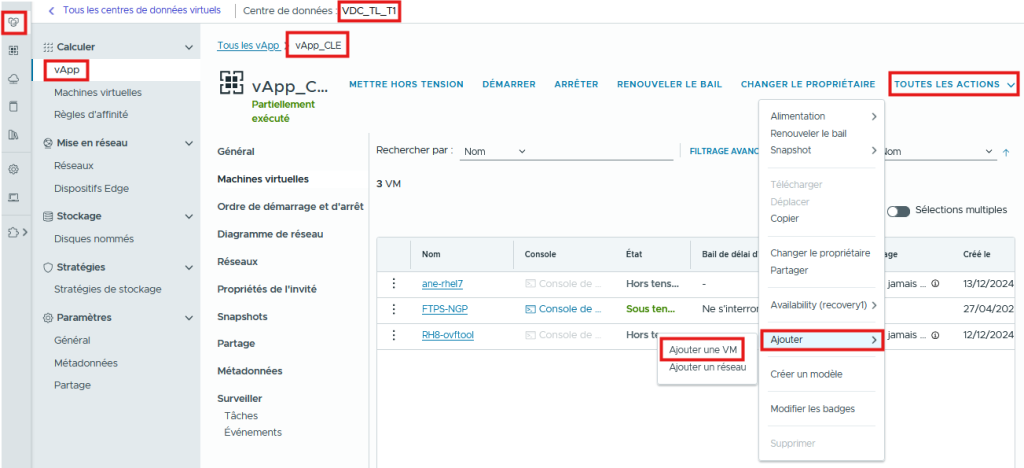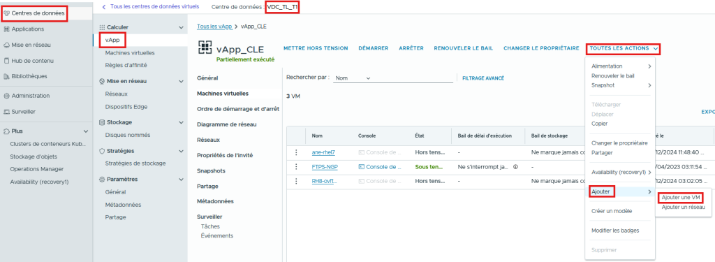 - Depuis Centres de données / vApp / TOUTES LES ACTIONS / Ajouter / Ajouter une VM