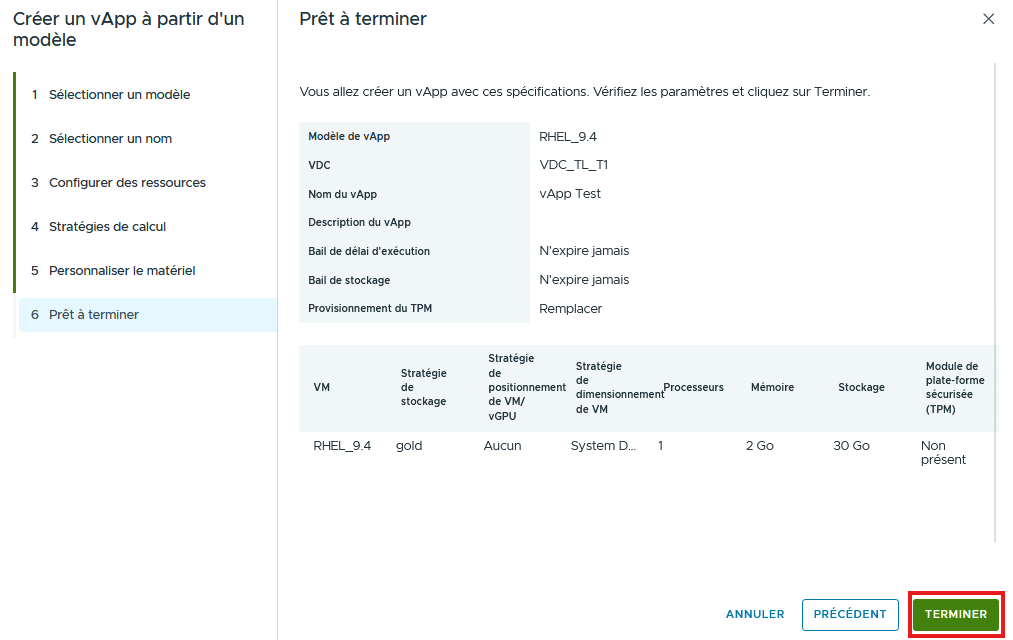 Le reste de la procédure est similaire à ce qui nous est proposé lors de l’ajout d’un vApp depuis un template à ceci près :