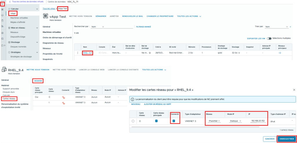 - Ajouter le Réseau à la vApp pour pouvoir ensuite l’ajouter à la VM.