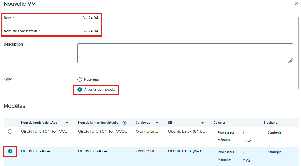 - Vous devez avoir suffisamment de ressources disponible dans votre VDC pour déployer une nouvelle VM.