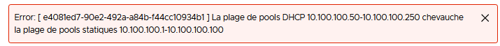 Si l’un de vos Pools chevauche un autre Pool d’adresse IP vous aurez ce message d’erreur lors de la dernière étape de Vérification.