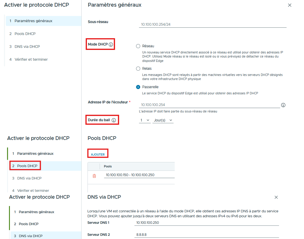 Configuration du DHCP