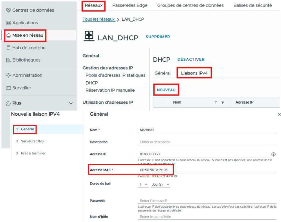 Les liaisons IPv4 vous permettent de Réserver et Fournir une adresse IP à une VM via DHCP. Plus de Détails ICI