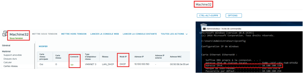 Configurer la vNic sur la VM en mode DHCP