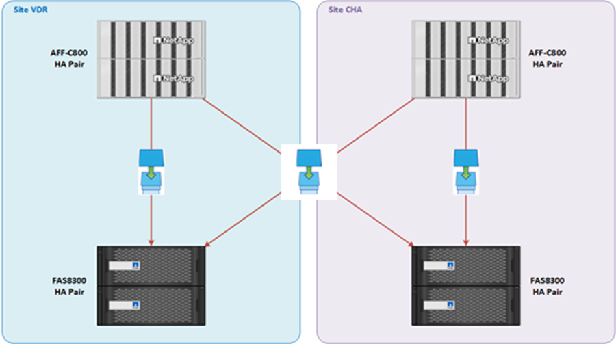 La réplication entre les 2 SVM du Client passe par le lien intersites, entre VDR et CHA.